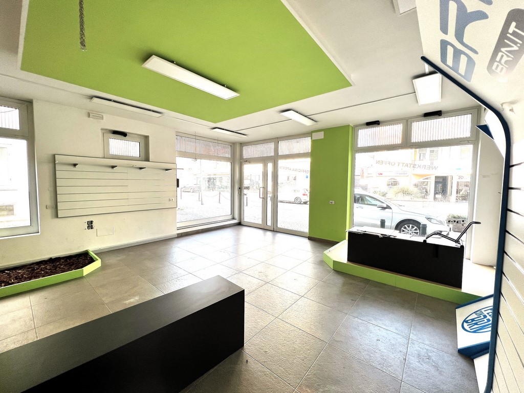 Wir bieten ein Geschäft (ca. 117 mq) mit großen Fensterfronten und hoher Sichtbarkeit in bester Lage in der Kennedystraße in Leifers zum Kauf an.
