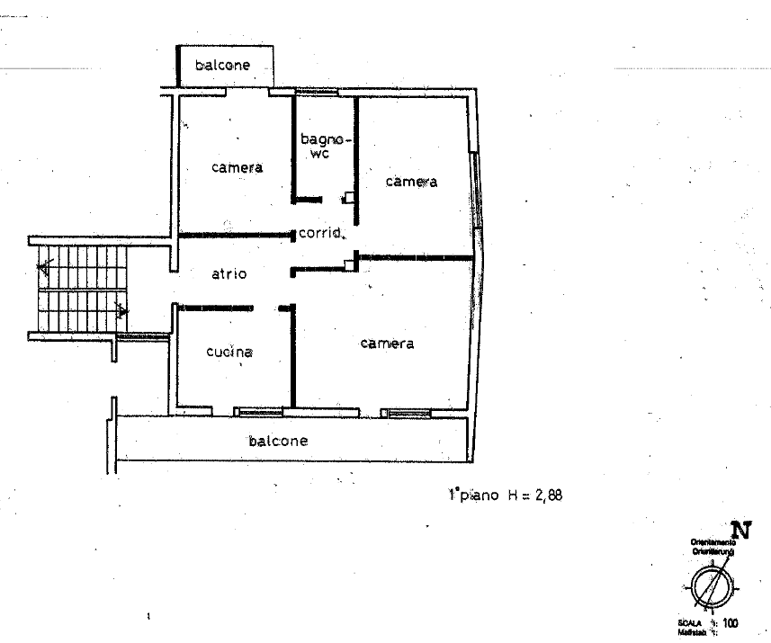 Die Wohnung, mit Süd-Südost-Ausrichtung, besteht aus einem Wohnzimmer mit Balkon, getrennter Küche, zwei Schlafzimmern, Tageslichtbad und Vorraum.